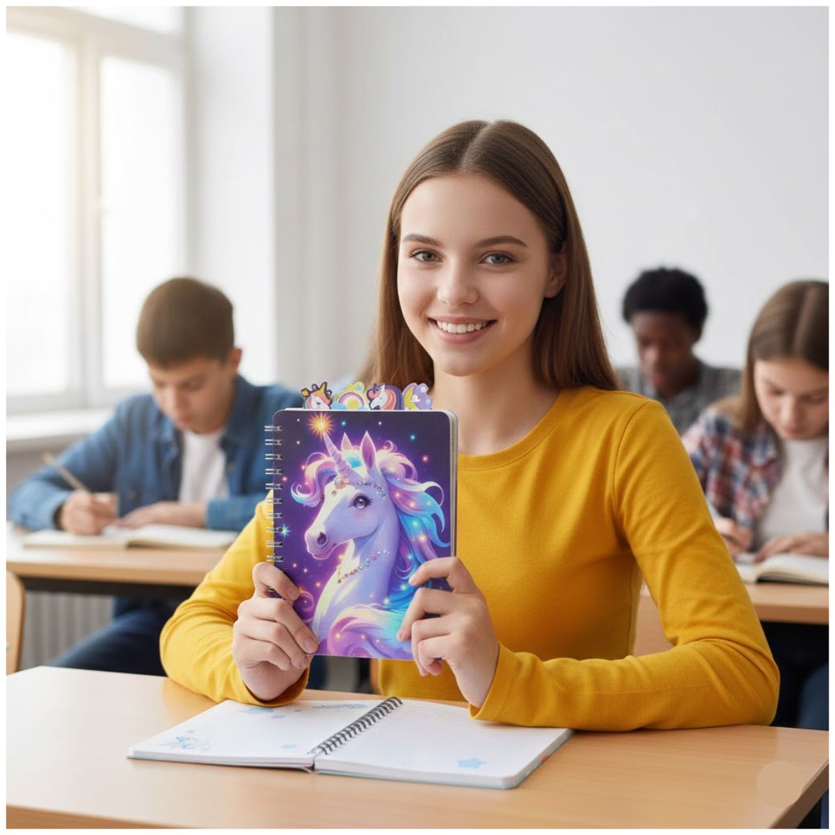 ¡Anota tus mejores ideas con la energía mágica! Este Cuaderno de Notas Unicorn Magic es el compañero perfecto para quienes aman la estética moderna y buscan un espacio libre para sus pensamientos, clases o dibujos. Con un diseño vibrante como divertidas ilustraciones, esta libreta hará que escribir sea el momento más tierno, relajante de tu jornada.